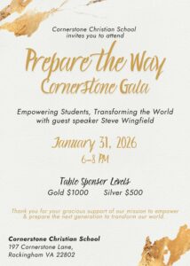 To sponsor a table or request more information about the 2026 Cornerstone Gala & silent auction, please reach out to Kristin Barb (540) 432-9816 or kristinbarb@ccsconnection.org